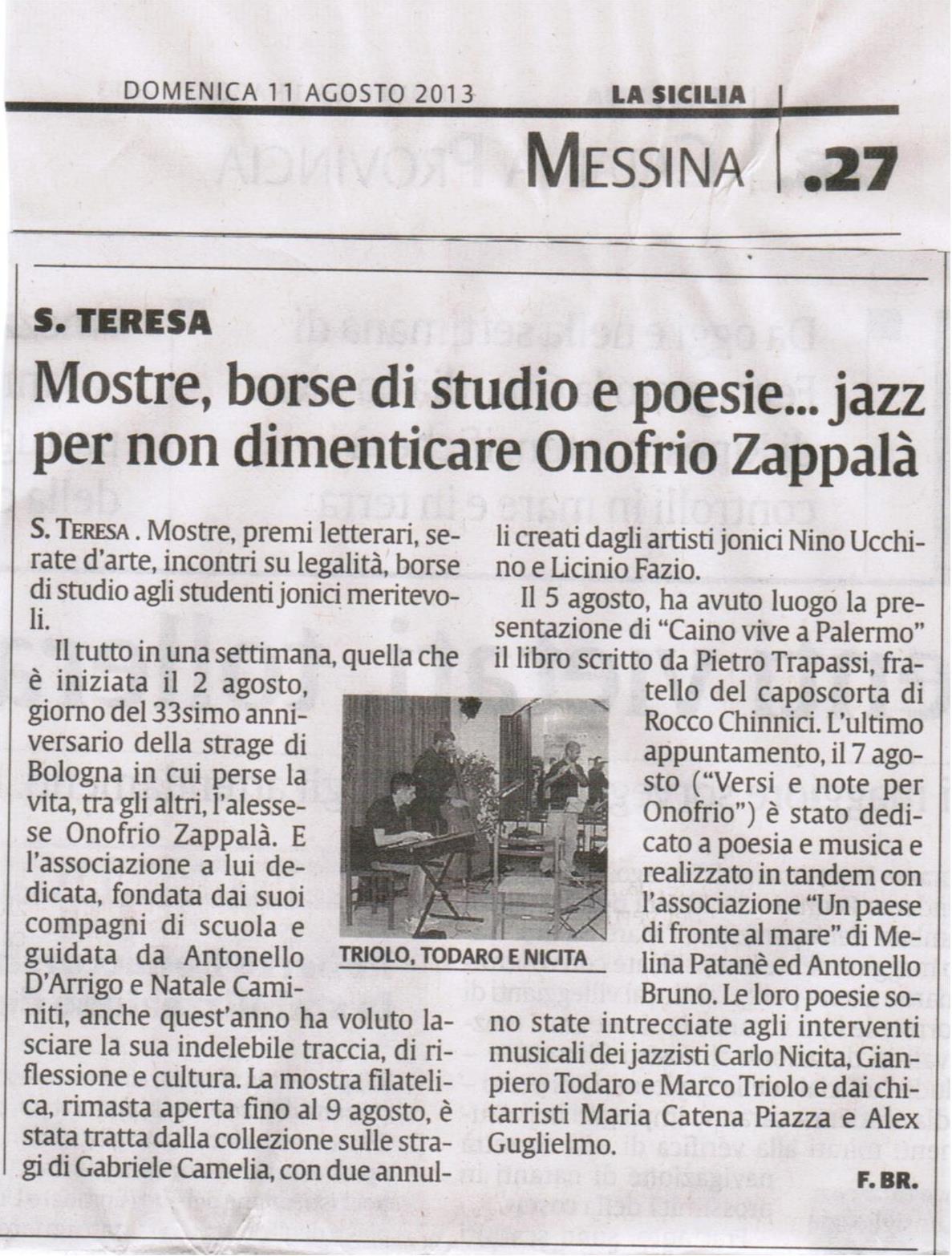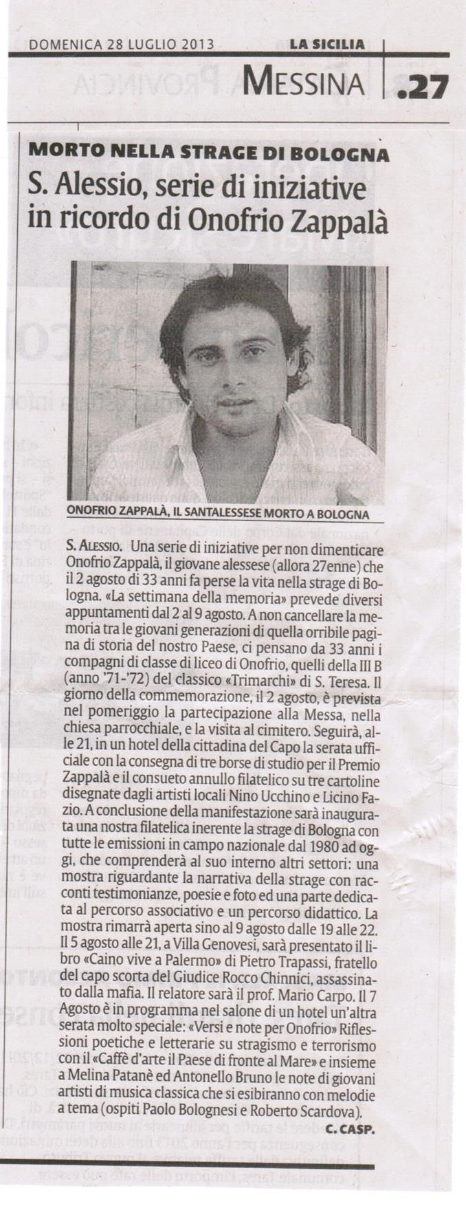 Pubblichiamo due articoli del 28 Luglio e 11 Agosto 2013, prima e dopo le manifestazioni per il 33° anniversario, apparsi sul quotidiano La Sicilia.